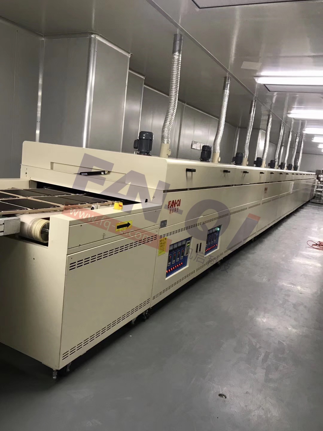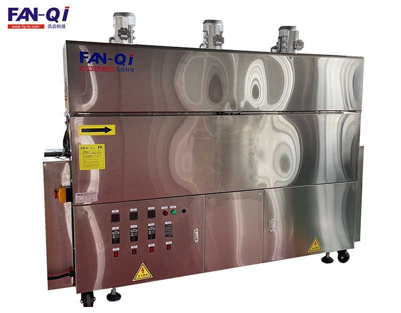 烘干線參考尺寸:內(nèi)尺寸W600*D500*560mm*2箱 外尺寸W1450*D760*H1860mm溫度:常溫+20℃~+200℃,常用溫度低于150℃安裝耐高溫高效過濾器材質(zhì):內(nèi)箱為不銹鋼板SUS304鏡面板,外箱為鋼板烤漆。